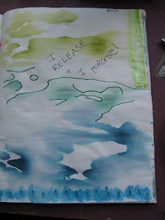 Whilst 'blurfing' the other day I found a facebook page called Just Journal which has prompts and step by step photos to start creating your own art journal, last night i began with the first double page and came up with this
